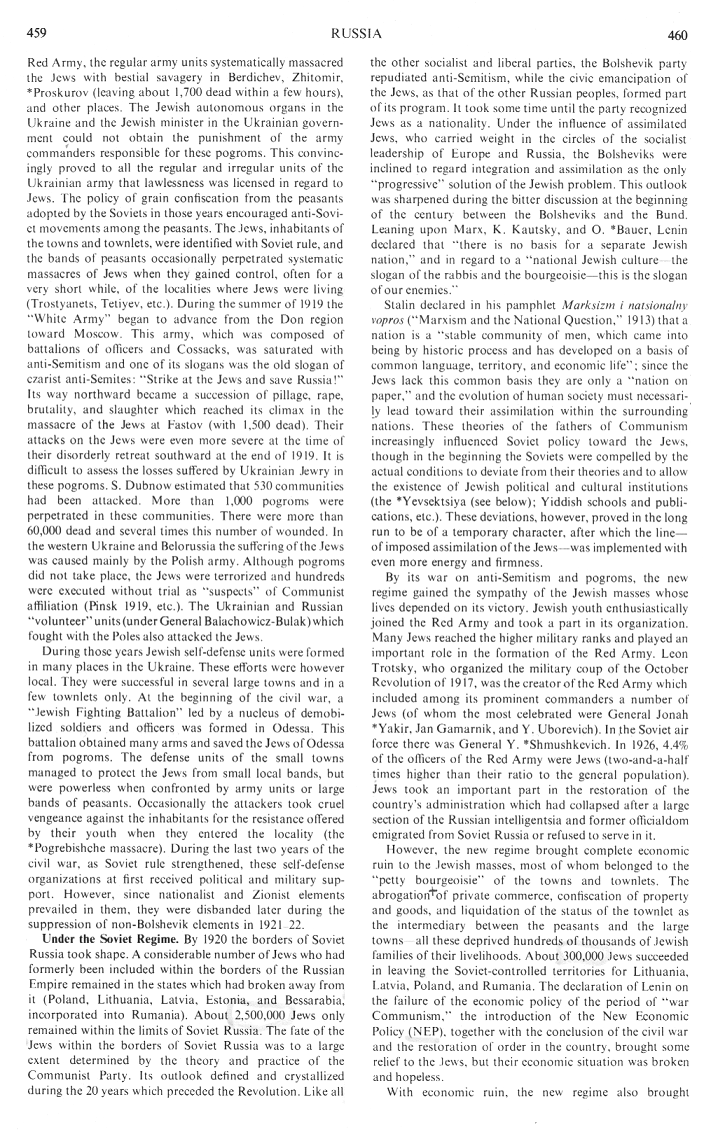 Encyclopaedia Judaica (1971): Russia, vol. 14, col. 459-460