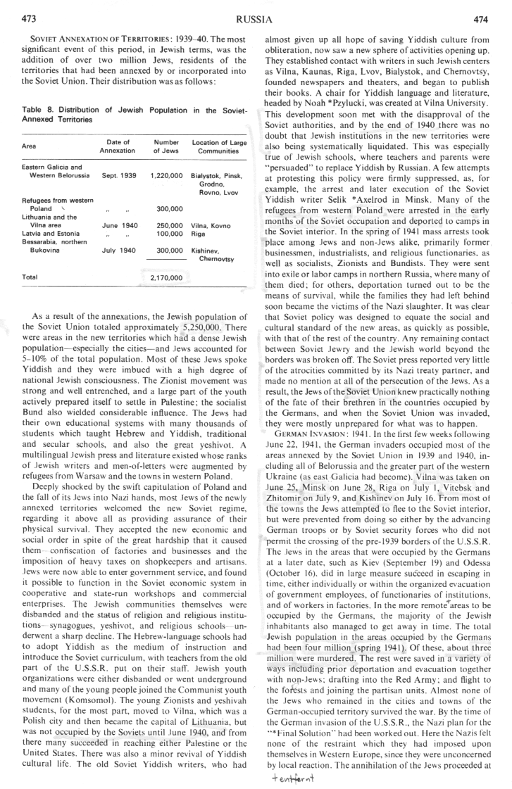 As a result of the annexations, the Jewish population of the Soviet Union totaled approximately 5,250,000.