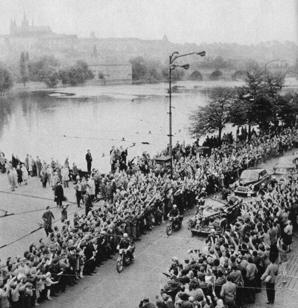 Convoy de triunfo de Gagarin en Praga del aeropuerto al centro de la ciudad