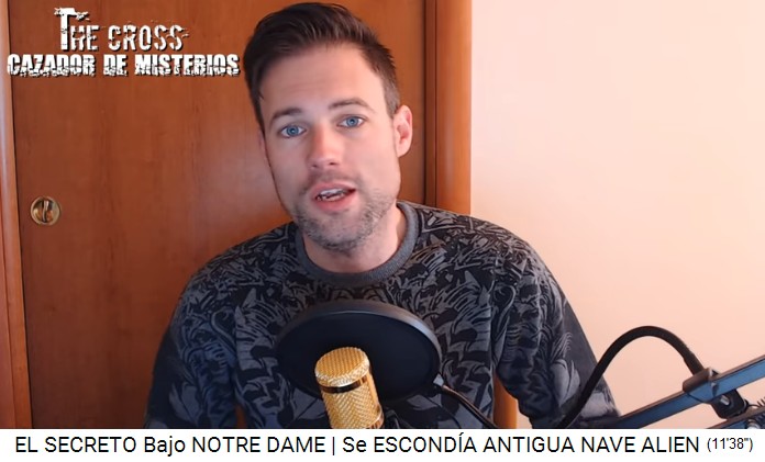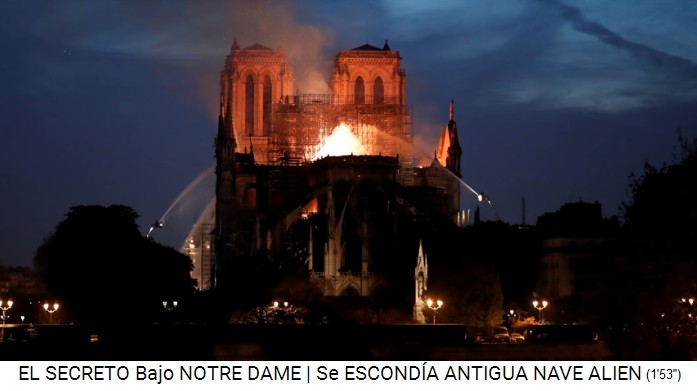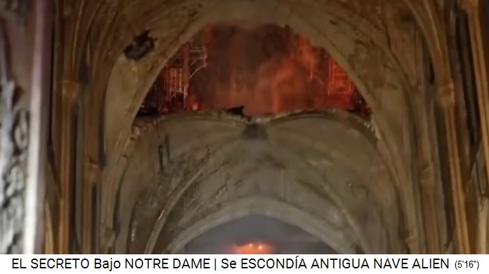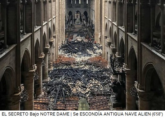 Die Propaganda meint, die Löcher im Gewölbe seien durch das Feuer verursacht (5'19''). Der Untergrund der Notre Dame ist dreieckig und quadratisch angelegt, dann sind da auch noch Katakomben (5'48''), also das ist ein alter Flughafen (antiguo hangar) der Anunnaki, dort wurde das Raumschiff zusammen mit Reliquien oder Teile davon aufbewahrt, auch andere Objekte, alte technische Objekte der Anunnaki, die sie verschweigen, also das sind unsere Vorfahren, unsere Schöpfer (6'10'').