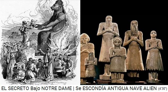 Zeichnung und Statuen der Anunnaki-Ausserirdischen mit Zentrum in Babylonien (heute Irak) -- Notre Dame 15.4.2019: Loch im Dachgewölbe