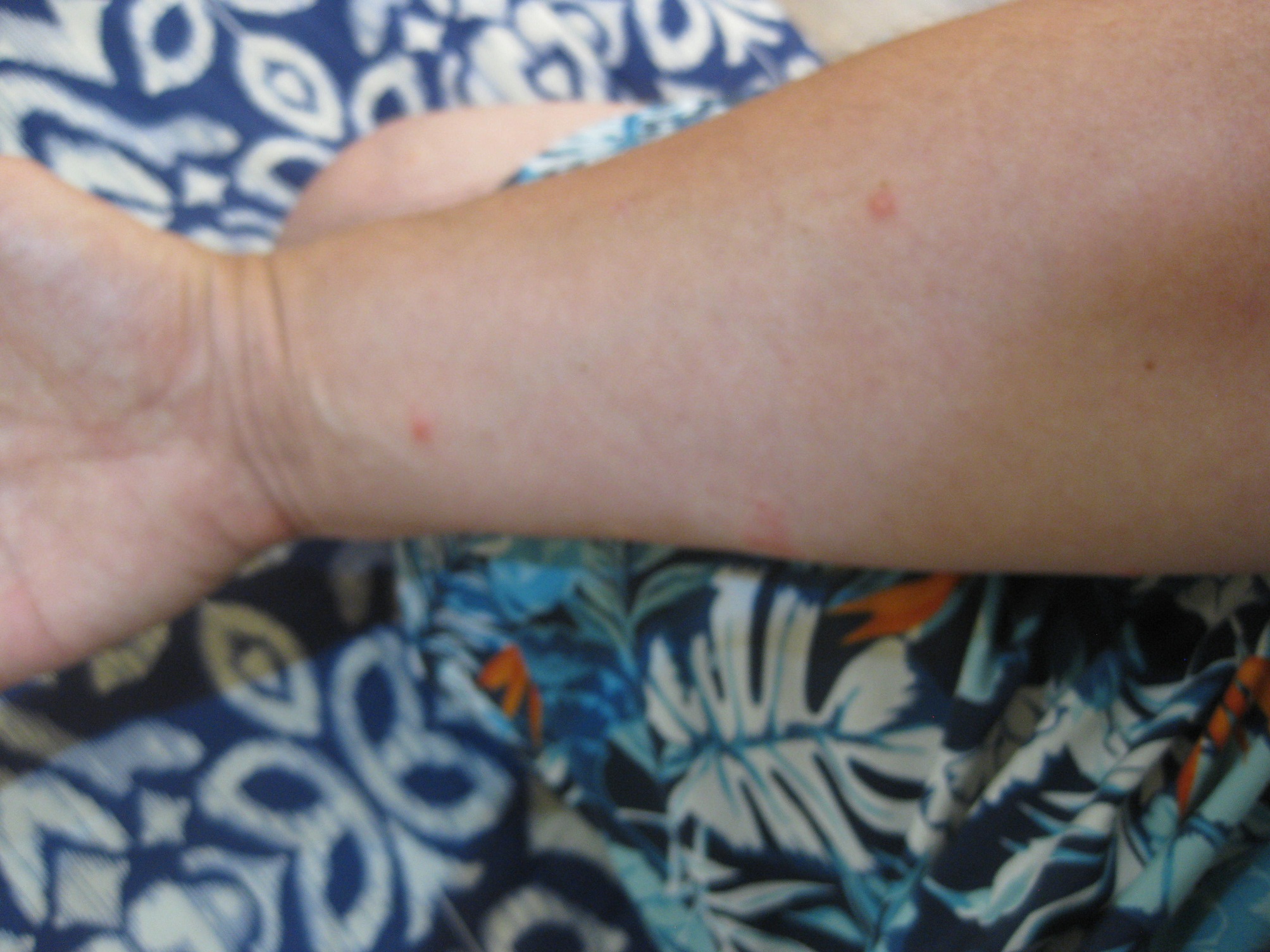 barzo izquierdo y más picaduras en su brazo izquierdo (!)
