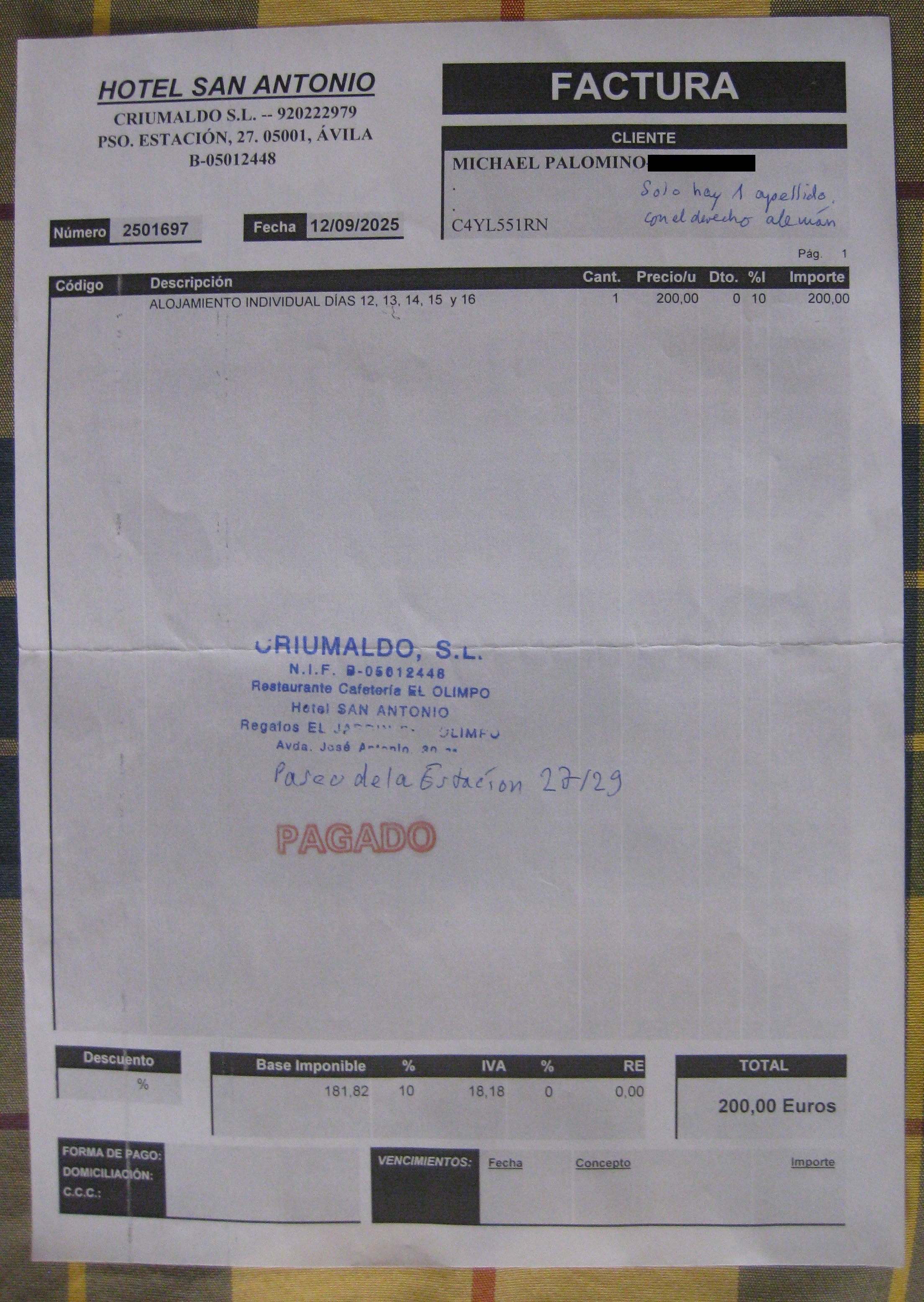 "Santa Teresa" de Ávila, 16-09-2025 [hotel+documentos 08]