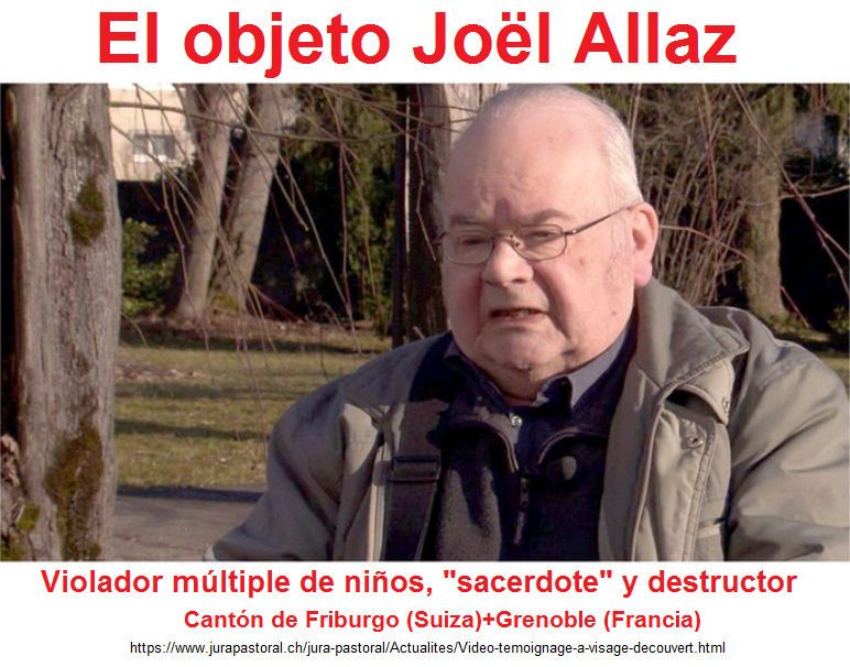 El depredador animal, el violador múltiple se llama "sacerdote", el Padre Joël Allaz [3] - primero hizo su "servicio" en el cantón de Friburgo en Suiza, después en la ciudad de Grenoble en Francia - en 2017 todavía NO fue en la cárcel - y la Wikipedia del Mosad NO lo conoce (estado 27-2-2019)!